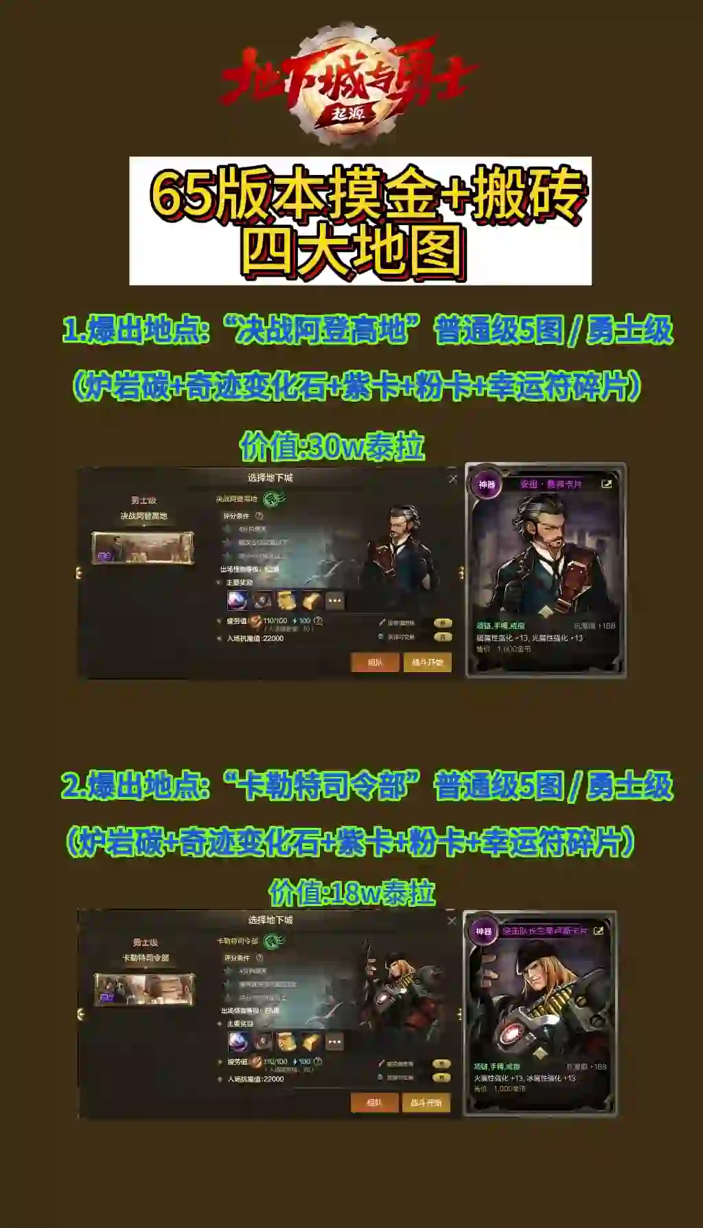 - 史诗级武器:尤其是带有特殊效果的武器,如“黑魔法”、“冰霜之怒”等,能够在关键时刻大幅提升爆发能力。
